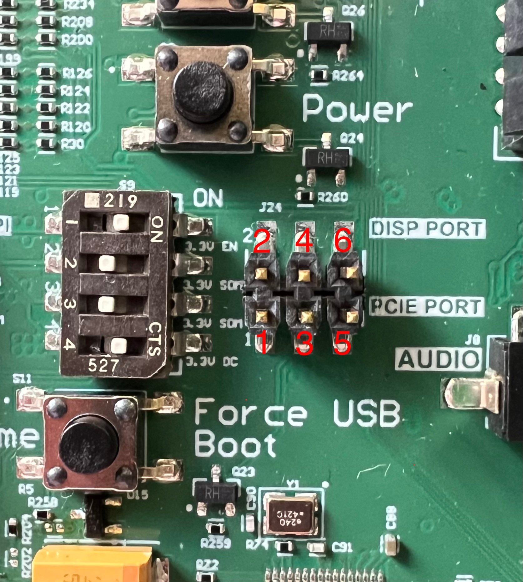 - Pin 3 - EXT-BUSBn - Requires a hardware modification, R258 must be populated, so will be left out of below example. This results the SOM to FORCE USB BOOT unless EXT-BUSBn is logic high.